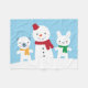 Let's go out and make a snowman! A cute bunny, bear and snowman with colourful scarves in a snowy landscape.