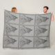Um cobertor com uma versão transparente de um cavaleiro em armadura brilhante. O trabalho de arte é transparente para que o comprador possa escolher a cor de fundo que melhor se adapta aos seus gostos.