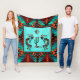 Este é um único "Um dos tipos" do sudoeste de Kokopelli Sherpa Blanket! Ele apresenta dois Kokopelli sudoeste tocando flauta e dançando em torno de um cacto sob o sol em um fundo de turquesa... cercado por uma borda sudoeste em Turquesa, Design de Arte Original Laranja & Negra pelo artista Kerry Miller.