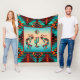 Este é um único "Um dos tipos" do sudoeste de Kokopelli Sherpa Blanket! Ela apresenta dois Kokopelli sudoeste tocando flauta e dançando em torno de um cacto sob o sol em um fundo de turquesa e sol laranja... cercado por uma borda sudoeste em Turquesa, Design de Arte Original Laranja & Negra pelo artista Kerry Miller.