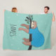 Folheto Bonito - Este cobertor confortável apresenta uma preguiça dormente enquanto pendura num galho de pijama azul. O fundo está em verde, decorado com estrelas e corações. Perfeito para uma soneca à tarde ou para ficar preso como uma preguiça enquanto você se desloca em um sono profundo com esse cobertor fofo. As preguiças sabem relaxar, por isso, porque não se metem no ato. Uma opção de presente fantástica ou apenas um toque decorativo e engraçado na sua própria casa. Personalize este design bonitinho adicionando seu nome ou nome de um amigo a ele.