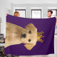 Cachorro no Dourado cobertor do velo da coroa de Ricaso. Um adorável cachorro Labrador amarelo em fundo roxo profundo. Ideal para amantes de animais/cães.