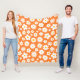Um cobertor de velo moderno, caracterizado por margaridas brancas planas espalhadas com centros de ouro de girassol sobre um fundo laranja ousado. Entre em contato para obter assistência para personalização ou personalização.