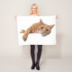 Retrato de uma taça laranja de taça doméstica de gato deitado sobre um fundo branco com pata cortada sobre uma mesa