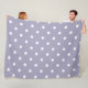 Este cobertor aconchegante apresenta uma design de bolinhas simples e fofa. Um padrão de bolinhas brancas é impresso sobre um fundo cor roxa lavanda. O design clássico e elegante é perfeito para um chá de fraldas ou aniversário e adiciona um toque colorido e na moda a qualquer sala.