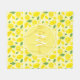 Folheto com um padrão de limões sorridentes e folhas verdes. Por cima do padrão de fruta está uma combinação de nome e monograma que pode ser personalizada.