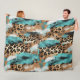 Cobertor De Velo Leopardo Negro Dourado Turquesa