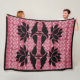 Fundo cor-de-rosa torrado, motivo LGA branco, silhueta de lótus com sombra de Sangria x4 espelhada.