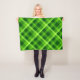 Um cobertor de velo pequeno com um design de padrão de xadrez verde-árvore bonito, vibrante.