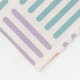Um padrão colorido e geométrico que apresenta blocos de linhas paralelas em um layout de grade, com cada bloco em uma cor vibrante diferente. Esta design combina um olhar retrorinspirado com o moderno minimalismo, fazer que visualmente impressionante e divertido.