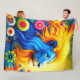 Este cobertor de velo tem um design de leão nele.