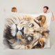 A fleece Blanket with a lion design on it.