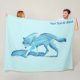 Um lobo azul estilizado (Canis lupus) lança uma sombra enquanto atravessa o terreno nevado. Adicione seu próprio texto.