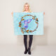 Um cobertor de velo com uma ilustração gráfica composta por um lobo de aquarela roxa, em uma pose clássica de uivar. Cercados por uma camada ilustrada de madeira, cristais, penas e miçangas. Legal motif nativo americano com estilo boho.