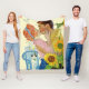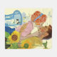 Artista: Bernard D'Andrea | Senhora de cabelos vermelhos beijando o homem atrás dos girassóis com uma cadeira azul e um gato.