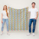 cobertor brilhante e colorido de velo com um padrão de maçãs texturizadas sobre fundo amarelo pálido.