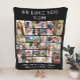 Um cobertor personalizado de colagem de fotos para aquele presente perfeito da mãe. Personalize com 30 fotos de seus filhos, família, animais de estimação, memórias, eventos, etc. e adicione uma ou duas linhas de texto, como "nós amamos sua mãe" e seus nomes, em tipografia branca elegante em fundo preto.