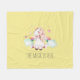 Ilustração de aquarela adorável apresenta unicórnio sentado com arco-íris, nuvens e estrelas. A citação diz "A Magia é Real"