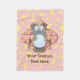 Velha feiticeiro com capa rosa e bola mágica de cristal. Use a foto facial para personalizar. Texto personalizado.