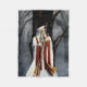 Mago segurando cajado vestido de branco, dourado e vermelho com um corvo em seu ombro.