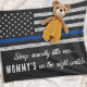 Dormir bem pequeno, Mamãe no Night Watch - Thin Blue Line Baby Blanket - design de bandeira americana em cores da Polícia, design angustiado. Perfeito para todas as mães e crianças da polícia. COPYRIGHT © 2020 Judy Burrows, Black Dog Art - Todos Os Direitos Reservados. Mamãe Na Polícia De Vigilância Noturna
