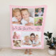 Celebre a mãe com este cobertor de colagem de fotos rosa personalizado com 6 fotos de seus filhos, família, animais de estimação, etc., "Eu te amo" ou "Nós te amamos", e nomes de família e o ano.