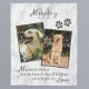 Um cobertor de cães memorial de perda de animais de estimação com um fundo elegante de mármore, seu nome inicial de cães, duas fotos para você substituir por suas próprias estampas de pata cardíaca, e uma citação de simpatia que diz: 'memórias são a maneira do coração se segurar àqueles que amamos'.