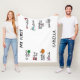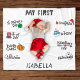 Este cobertor de bebê marco bonito e moderno é perfeito para tirar fotos do seu bebê nos seus primeiros feriados importantes. Ele apresenta a expressão "Meu Primeiro" no topo, em letras negras mais 8 dos feriados principais, cada um com um ícone colorido (rua. Dia do Patrick com um trevo de quatro folhas, 4 de julho com um chapéu de "estrelas e listras", Ação de Graças com uma abóbora, Páscoa com orelhas bonitinhas, Natal com chapéu de Papai noel, Aniversário com um belo bolo, Dia de os namorados com seta e coração, e Halloween com um fantasma divertido). Ele pode ser personalizado com o nome do bebê em uma fonte preta manuscrita, fazer o presente perfeito para chás de fraldas ou recém-nascidos e novos pais.