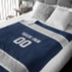 Dê ao fã final o cobertor máximo, personalizado com seu nome, equipe e número.