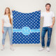 Este cobertor monograma divertido apresenta bolinhas brancas nítidas sobre um fundo de azul marinho clássico com uma faixa azul-clara e branca pré-definida e um monograma correspondente que você pode personalizar com sua escolha inicial.