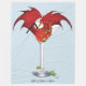 Um pequeno dragão vermelho giro se aproxima de uma azeitona verde em um copo de martini