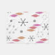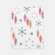 Uma era atômica retro design com um tema de Natal. Apresenta flocos de neve prateada e ornamentos de árvores de Natal vermelhos, laranja e roxas.