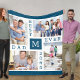 Folheto de fotos personalizado com Monograma e 4 de suas fotos favoritas para o Melhor Pai de sempre. O modelo de foto está pronto para que você adicione suas 4 fotos que são exibidas 2x retrato e 2x paisagem. Você também pode editar o pai inicial e o ano. O cobertor de fotos tem uma paleta colorida de azul e branco, com tipografia ousada. Um presente adorável para qualquer época do ano e perfeito para o Dia de os pais.
