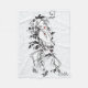 Garota bonita com lábios vermelhos e damasco floral branco. Modelo de cobertor de velo personalizável