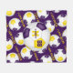 Este cobertor esportivo de futebol apresenta a imagem realista de uma bola de futebol sobredimensionada que tem painéis roxos, dourados e brancos sobre os quais seu nome, monograma e número de camisa podem ser personalizados, sobrepondo-se a um padrão de bolas de futebol roxo, douradas e brancas menores e ao texto de fonte esportiva "EU AMO SOCCER" que se estende entre as filas anglentas das bolas de futebol - o fundo é púrpura personalizável - atz_d_zynes