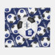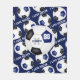 Este cobertor esportivo de futebol apresenta a imagem realista de uma bola de futebol sobredimensionada que tem painéis azuis, pretos e brancos sobre os quais seu nome, monograma e número de camisa podem ser personalizados, sobrepondo-se a um padrão de bolas de futebol azul, preto e branco menores e ao texto de fonte esportiva "EU AMO SOCCER" que se estende entre as filas angustiadas das bolas de futebol - o fundo é azul personalizável - por katz d_zynes