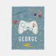 Este cobertor legal e divertido de jogos para crianças com temas específicos apresenta um design de padrão de videogame, com fone de ouvido, relâmpago, moedas e estrelas. O cobertor pode ser personalizado com o nome de seus garotos. O presente perfeito para qualquer jogador!