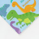 Um lindíssimo cobertor de pelúcia do design Dinossauro que apresenta dinossauros bonitos e seus nomes em uma fonte brilhante e divertida. Dinossauros - Tyrannosaurus Rex ( T-Rex), Pteranodon, Brontosaurus, Ankylosaurus, Plesiossauro, Velociraptor e um Stegossauro. Faria o presente perfeito para aqueles que amam dinossauros. Personalize com um nome para ser um item único de aniversário ou presente de natal ou como um presente para seu filho, neto, neto excelente ou sobrinho.
