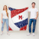 Essa manta temida pelo vôlei apresenta a imagem realista de um vôlei de tamanho abstrato que tem painéis vermelhos, azuis e brancos - um padrão contínuo de rabiscos, flores e penas em cobrir brancos - os painéis azul e vermelho do vôlei - personalizam com o nome e o monograma do atleta, a letra da varsidade ou a camisa - de katz_d_zynes