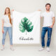 Design de cobertor de velo moderno, com folha de monstera verde de cor aquosa pintada à mão. O texto é personalizável.