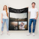 Um cobertor de velo moderno com um design simples e mínimo com uma colagem fotográfica de três das suas fotos favoritas sobre um fundo preto. Acima estão seus nomes em um roteiro elegante junto com seus detalhes de casamento.