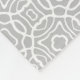 Nosso cobertor de pelúcia apresenta um padrão de quatrefoil orgânico e solto em cinzas de chico e branco, e pode ser personalizado com seu monograma inicial em contraste com o coral de verão.