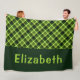 Um cobertor de velo monograma de grande porte, com um belo padrão de xadrez diagonal, design em verde de ervilha. Crie o presente personalizado perfeito clicando no botão "personalizado" para adicionar um nome ou mensagem personalizada no campo modelo fornecido. Selecione o link "clique para personalizar mais" para alterar a fonte, o tamanho do texto e muito mais.