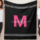 Folheto de velo preto e rosa quente personalizado. Adicione um toque divertido e na moda ao seu dormitório, à sua casa de repouso, ou a qualquer espaço com este cobertor de velo personalizado. Apresentando um fundo preto elegante, o design apresenta uma inicial rosa-quente vibrante emparelhada com um nome de script branco fluente para um aspecto chic e moderno. O cobertor é acentuado com detalhes de faixa em cada extremidade, adicionando um toque divertido ao design aconchegante. Totalmente personalizável, todas as cores podem ser ajustadas para se adequarem ao seu estilo pessoal e ao seu espaço. Perfeito como um presente pensativo para decoração do dormitório, esquartejamentos, aniversários, ou qualquer ocasião especial, este monograma de cobertor de velo combina estilo, calor e praticidade para criar um complemento à sua casa.