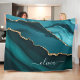 Teal Aqua Blue Green and Gold Foil Agate Geode Monograma Belo Roteiro Elegante Nome Sherpa Blanket. Isto faz o perfeito doce 16, 13, 15, 16, 18, 21rua, 30, 40, 50, 60, 70, 80, 90, 100 anos, casamento, chá de panela, aniversário, chá de fraldas, graduação ou festa de solteira presente para alguém que decorou o seu quarto no estilo moderno trendy chic.