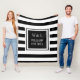 Cobertor de monograma de iniciais personalizadas elegante e moderno com um padrão de listras pretas e brancas com suas iniciais e nome da família com a data estabelecida definida em um quadrado com borda preta e texto branco clássico. Criado por Thisisnotme©