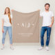 Este cobertor de velo oferece um design mínimo moderno com um monograma e o nome e a data do casamento dos recém-casados. O fundo é uma cor de areia clara e pode ser mudado para qualquer outra cor. Este é um presente personalizado excelente para os recém-casados.