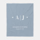 Este cobertor de velo oferece um design mínimo moderno com um monograma e o nome e a data do casamento dos recém-casados. O fundo é azul empoeirado e pode ser alterado para qualquer outra cor. Este é um presente personalizado excelente para os recém-casados.