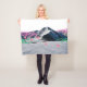 Mantenha-se quente e aconchegante numa legal noite com este design na moda com picos de montanha de neve e borboletas cor-de-rosa com neve suja. Bonito flores iluminam as montanhas.