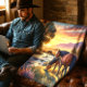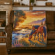 Cobertor De Velo Mustang Horse Grazing by Stream no Sunset